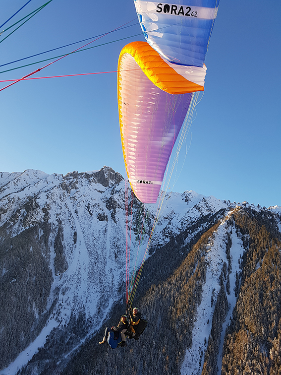 Le vol peut être réalisé au départ à pied ou à skis, selon votre préférence, votre poids et/ou les conditions du jour.
